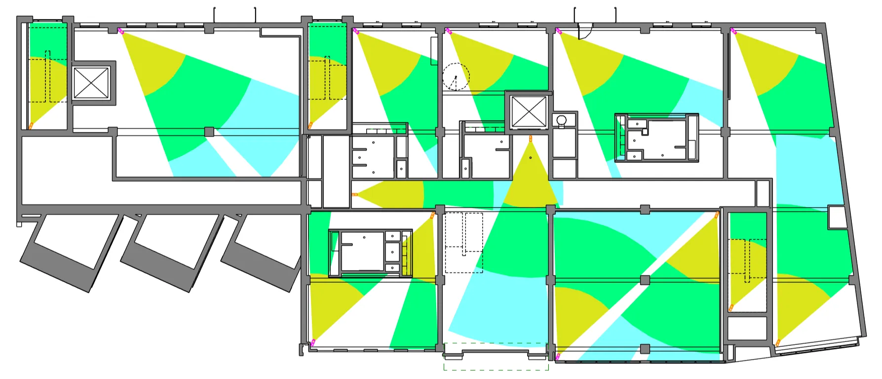 • Identify coverage loss caused by walls, columns, or other elements