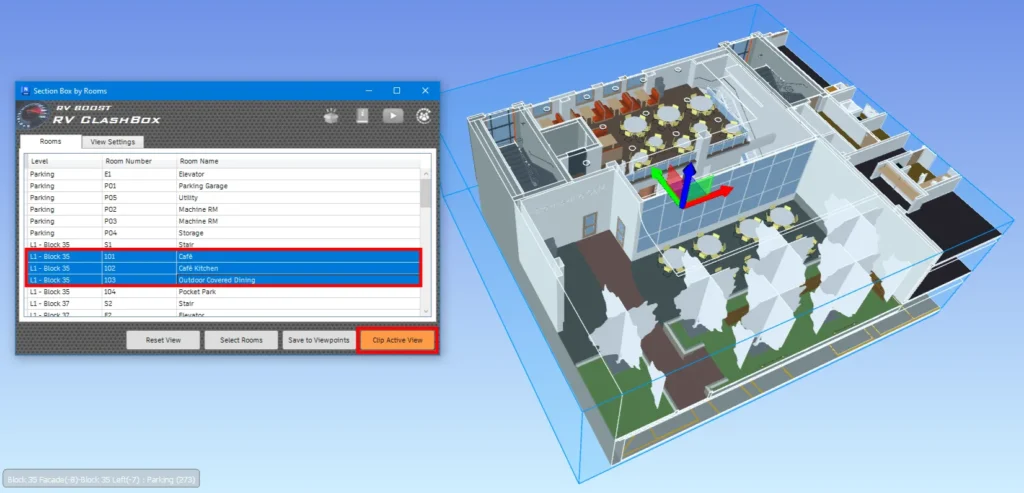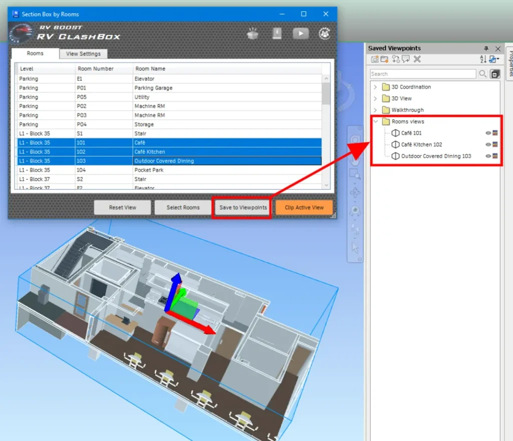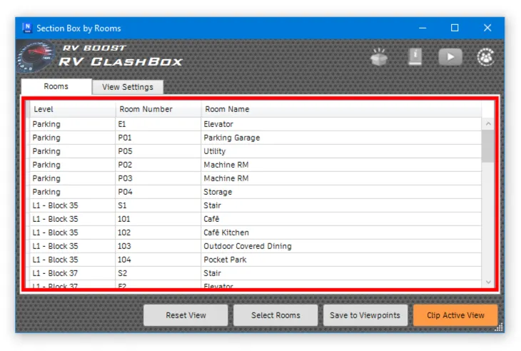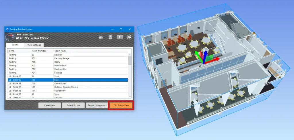 In addition to clashes, RV ClashBox can also apply a section box by room to help you easily check rooms in busy Navisworks models. As a prerequisite, make sure your Navisworks model contains rooms from Revit. If in doubt, check out the export process we outlined here.