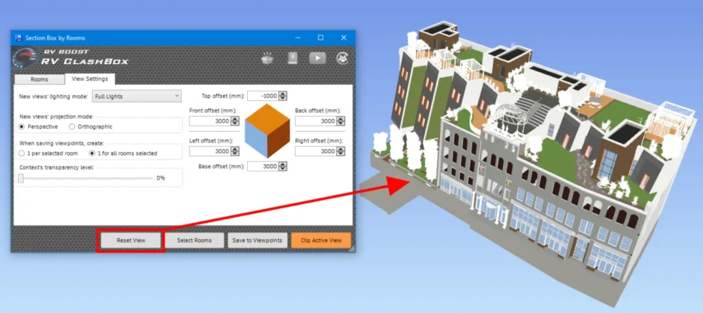 Once done with the review, click “Reset view” to return the active view to its unclipped state.